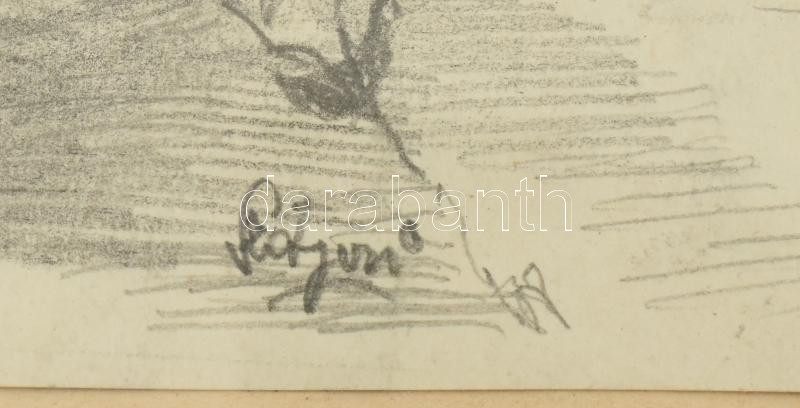 Olvashatatlan jelzéssel: Óbudai részlet. Ceruza, papír. Dekoratív, üvegezett fa keretben, 15,5x21 cm