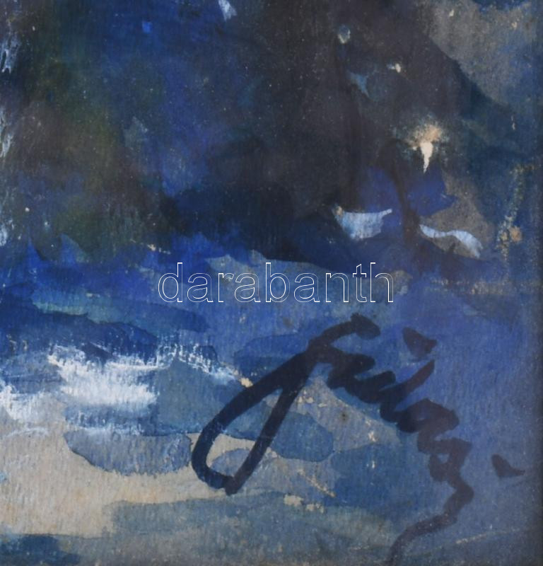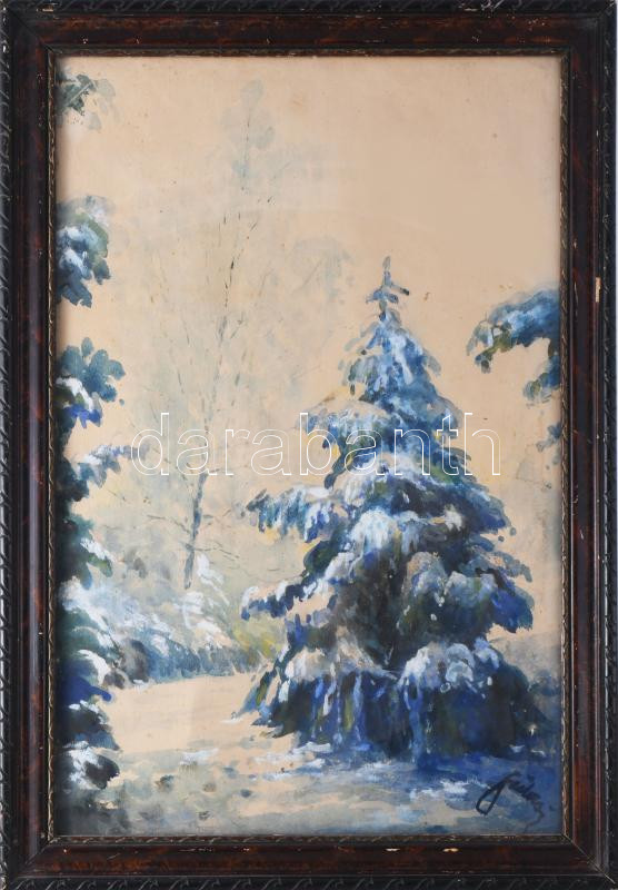 Olvashatatlan jelzéssel: Téli táj. Akvarell, papír. Ázásnyommal. Üvegezett, dekoratív, kissé sérült fakeretben, 56×36 cm