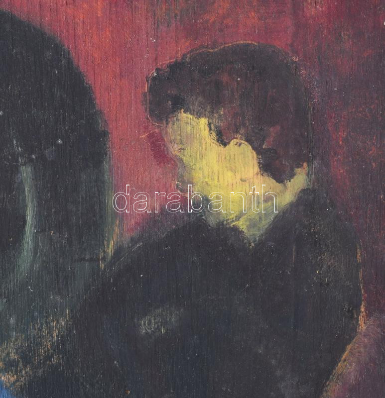 SA jelzéssel, feltehetően XX. sz. első fele-közepe: Üldögélők. Olaj, fa. Proveniencia: Saphier-gyűjtemény. Dekoratív fakeretben. 46x38 cm