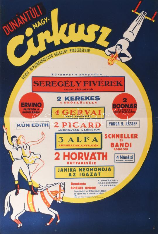 1951 Dunántúli Nagycirkusz, cirkuszplakát, papír, jelzés nélkül, Pátri... https://www.darabanth.com/de/515-Gemalde-Plakat-ex-libris-Auktion/517.0/Gemalde-und-Grafiken/Plakat~15/1951-Dunantuli-Nagycirkusz-cirkuszplakat-papir-jelzes-nelkul-Patria-Nyomda-60x43-5-cm-~II3487045