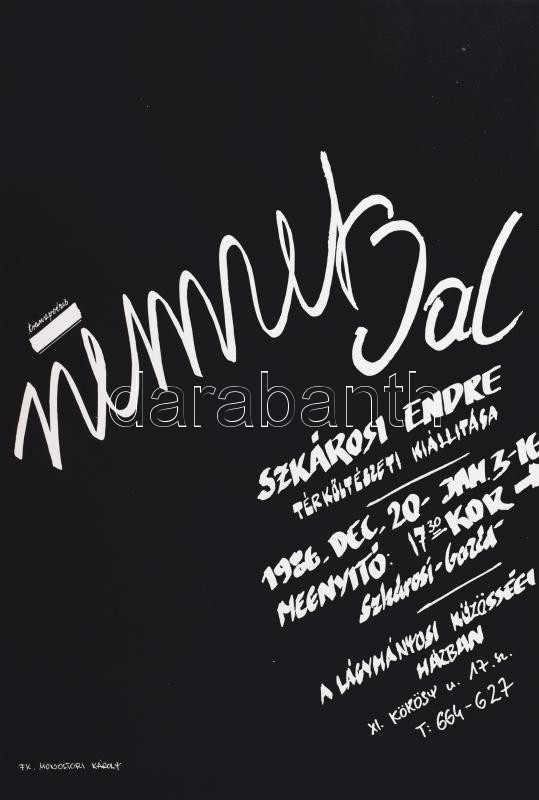 1986 Transzpoézis, Nemzeti Dal, Szkárosi Endre térköltészeti kiállítás... https://www.darabanth.com/de/515-Gemalde-Plakat-ex-libris-Auktion/517.0/Gemalde-und-Grafiken/Plakat~15/1986-Transzpoezis-Nemzeti-Dal-Szkarosi-Endre-terkolteszeti-kiallitasa-Plakat-papir-~II3474599
