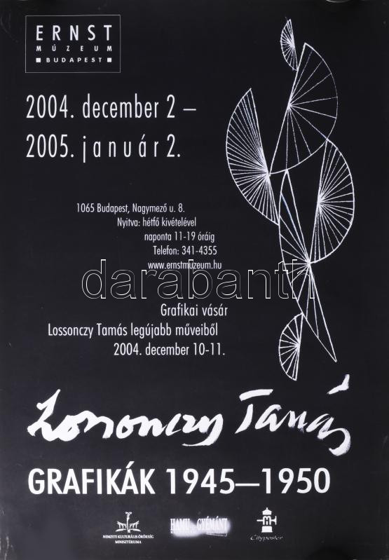 2004 Lossonczy Tamás, grafikák 1945-50, Ernst Múzeum, kiállítás plakát... https://www.darabanth.com/de/515-Gemalde-Plakat-ex-libris-Auktion/517.0/Gemalde-und-Grafiken/Plakat~15/2004-Lossonczy-Tamas-grafikak-1945-50-Ernst-Muzeum-kiallitas-plakat-papir-Feltekerve-5~II3492024
