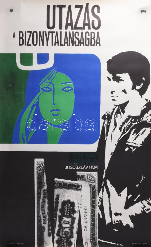 Beschreibung: Gunda Antal (1929-2013): Utazás a bizonytalanságba - Egy nap drámája, 1969. Filmplakát, ofszet, papír. Offset Nyomda. Hátoldalán Gunda Antal hagyatéki bélyegzővel. Feltekerve. 83x56 cm