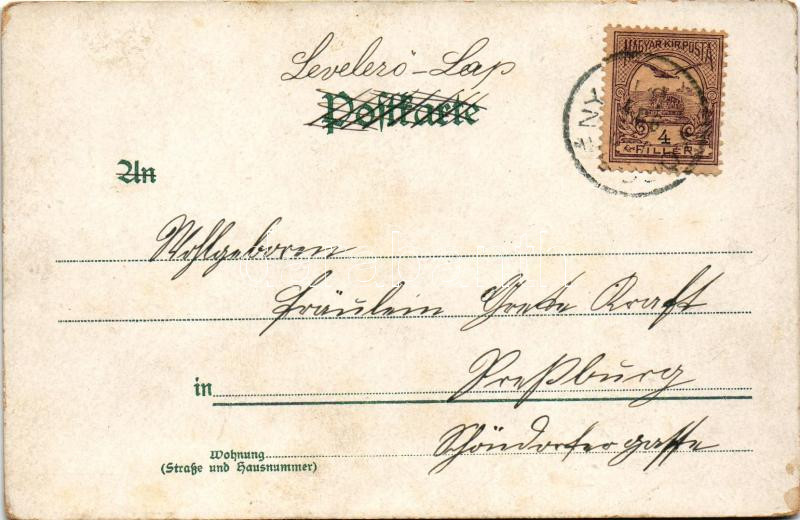 Viel Glück im neuen Jahre! / New Year greeting art postcard, lady with pig. "Erika" No. 579. litho s: Mailick (EK)