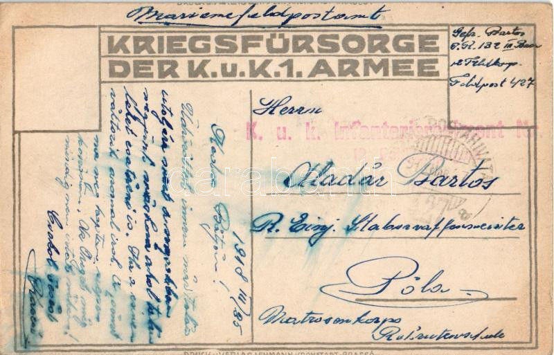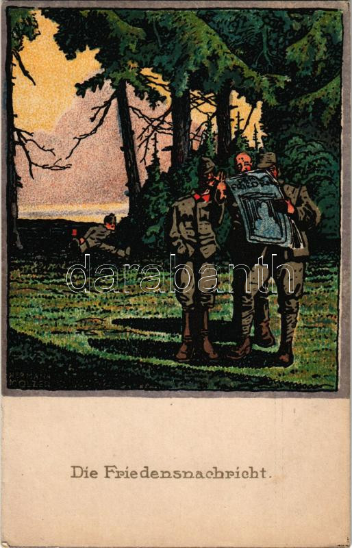 1918 Die Friedensnachricht. Kriegsfürsorge der k.u.k. 1. Armee / WWI Austro-Hungarian K.u.K. military art postcard, peace news. Druck u. Verlag Lehmann (Kronstadt-Brassó) litho s: Hermann Molzer + "K.u.k. Infanterieregiment Nr. 132. 12. Feldkompagnie" "TÁBORI POSTAHIVATAL 427" (EK)