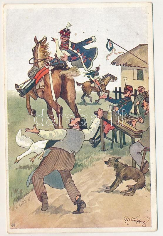 Osztrák-magyar katonai művészlap / K.u.K. Officers, hussars. B. K. W. I. 469-2. s: Schönpflug (ázott / wet damage)