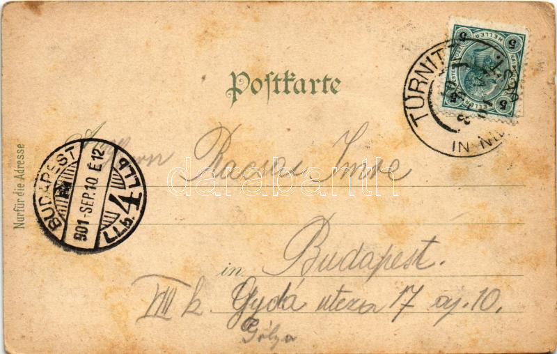 1901 Wienerbruck bei Mariazell, Burgers Hotel zum Lassingfall / waterfall, hotel. Kunstanstalt Karl Schwidernoch Art Nouveau, floral, litho (small tear)