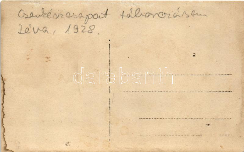 1928 Léva, Levice; cserkészcsapat táborozása, szakácsok / Hungarian scouts camp, chefs. photo (fl)