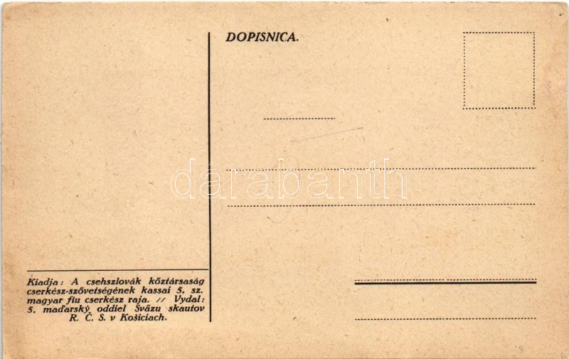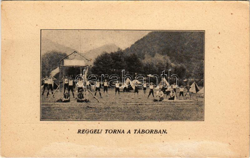 Reggeli torna a táborban. Kiadja a Csehszlovák Köztársaság cserkész-szövetségének kassai 5. sz. magyar fiú cserkész raja / Hungarian scout camp, boy scouts morning workout (felületi sérülés / surface damage)