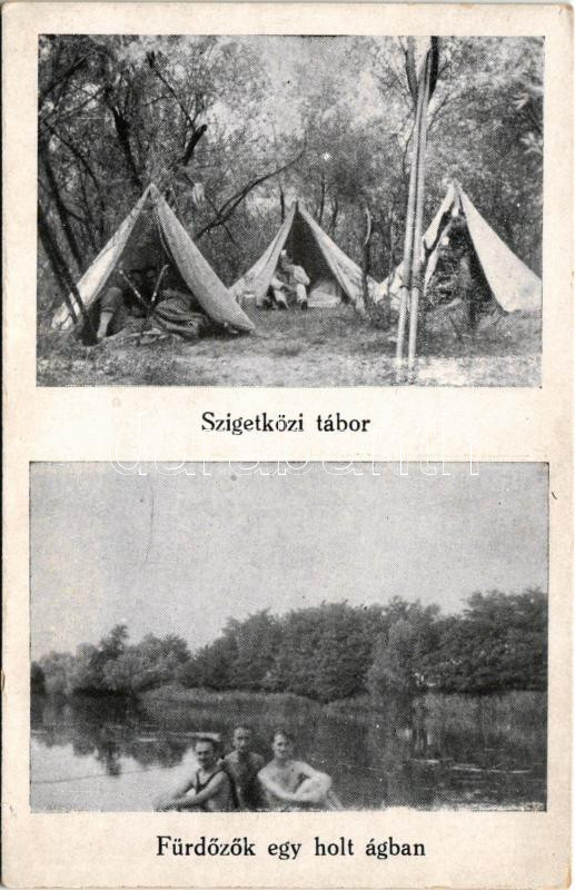 Szigetköz, cserkész tábor, fürdőzők egy holtágban. Mosonvármegyei Diákszövetség kiadása / Hungarian boy scout camp (gyűrődések / creases)