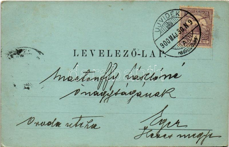 1900 Újvidék, Novi Sad; Erzsébet szálloda este holdfényben, Wagner üzlete. Urbán Ignác kiadása / hotel at night in moonlight, shops (felületi sérülés / surface damage)