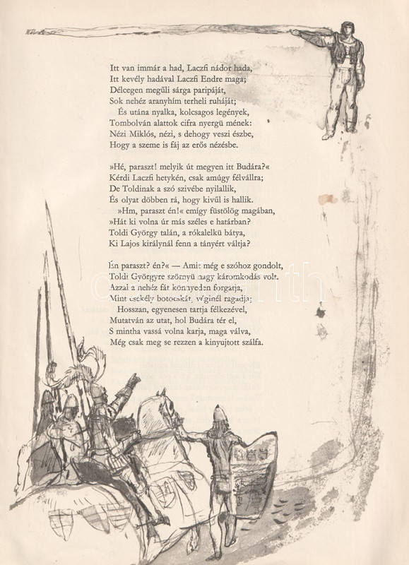 Arany János elbeszélő költeményeinek szövegét Zórád Ernő grafikusművész egész oldalas és szövegközti rajzai kísérik.