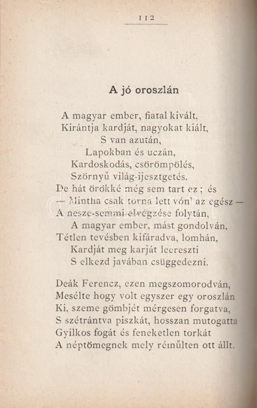 A tartalomból: Az oroszlán és szamár meséje -- A szent rucza -- A szomorú bölcsész -- A lázongó inasok -- Egy könyvárus meséje -- A fürediek, régen.