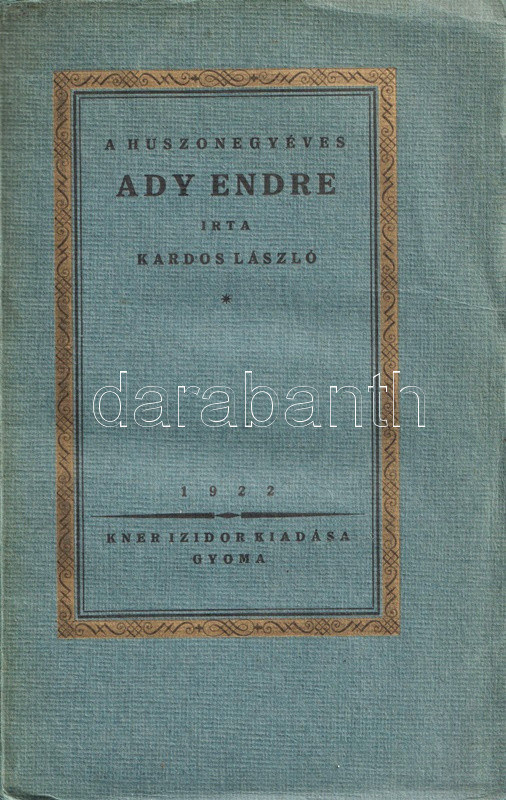 Gyoma, 1922. Kner Izidor (ny.) 88 p. Egyetlen kiadás.
