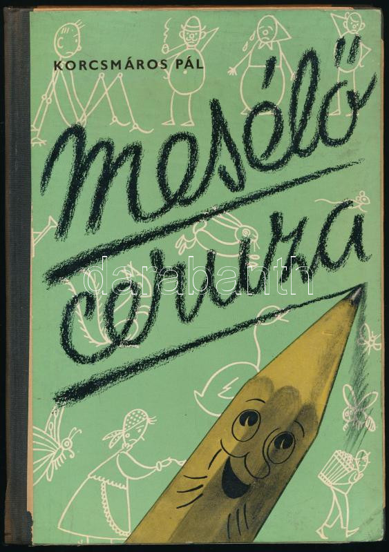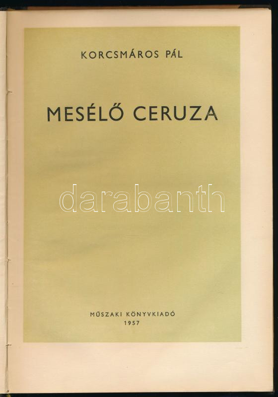 Korcsmáros Pál: Mesélő ceruza. Bp., 1957, Műszaki Könyvkiadó. Első kiadás. Kiadói félvászon-kötés, intézményi bélyegzővel. Megjelent 5100 példányban.
