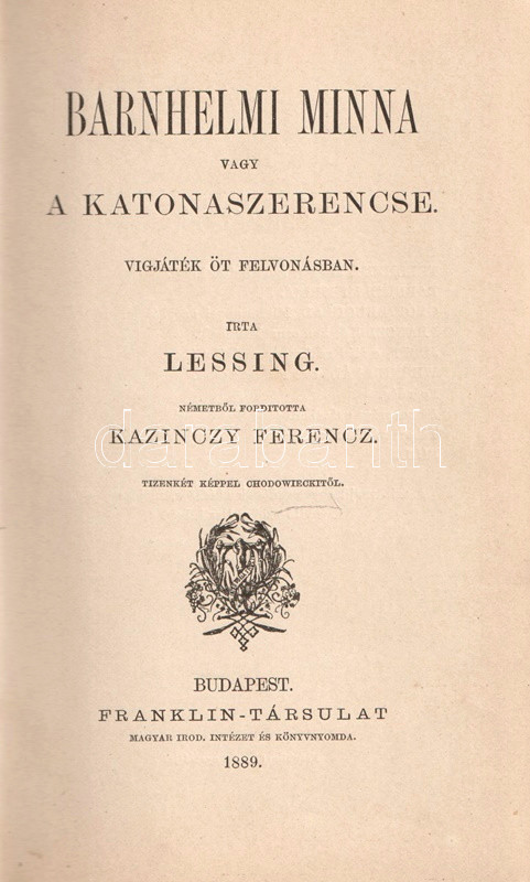 Barnhelmi Minna vagy a katonaszerencse. Vígjáték öt felvonásban. Németből fordította Kazinczy Ferencz. Tizenkét képpel.