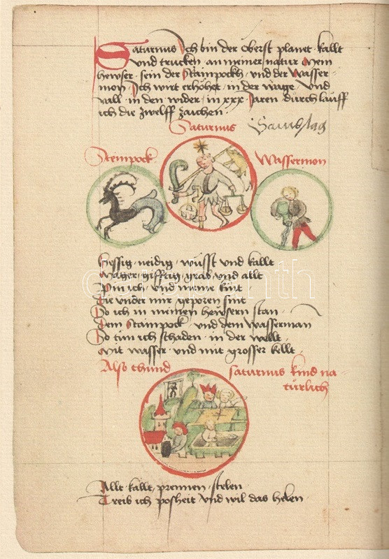 (Medizinisch-Astrologisches Volkskalender.) [15. század második végéről származó, német nyelvű, illusztrált asztrológiai tanácsadó kódex hasonmása és kísérő tanulmánya.]