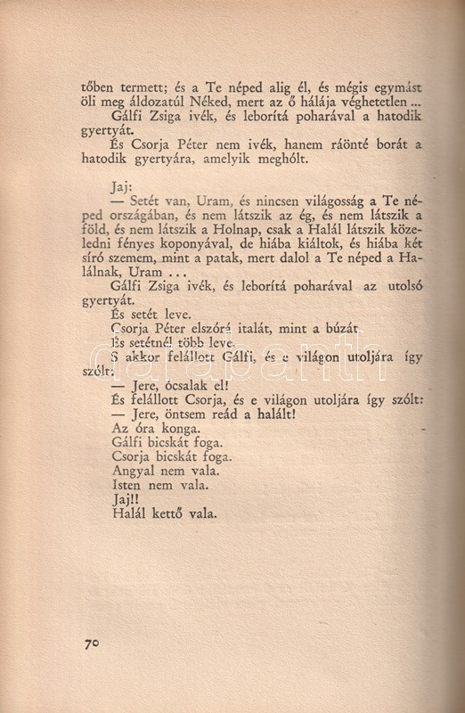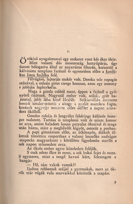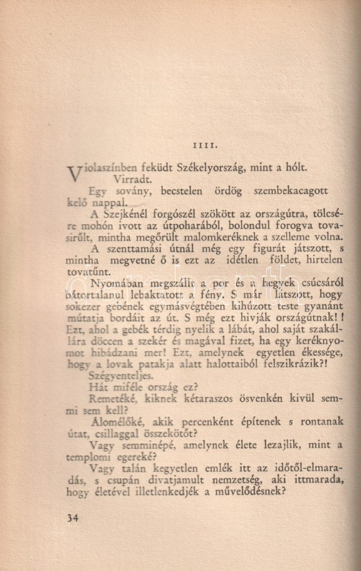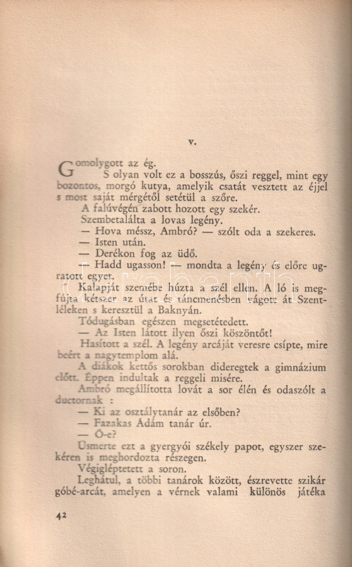Tamási Áron (1897-1966) író harmadik önálló kötete egyszerre jelent meg a kolozsvári Erdélyi Szépmíves Céh, illetve a budapesti Athenaeum Rt. kiadásában. Példányunk az Athenaeum Rt. kiadásából való, oldalszámozáson belül Kós Károly 4-4 kétszínnyomású metszetével.