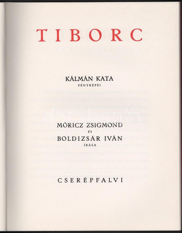Tiborc. Kálmán Kata fényképei. Móricz Zsigmond és Boldizsár Iván írása. Bp., 1937, Cserépfalvi. Reprint! Ritka! Kiadói papírkötés, jó állapotban.