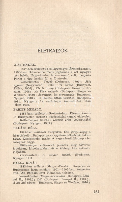 Budapest, 1911. A Nyugat kiadása (Légrády Testvérek ny.) 175 + [5] p. Első kiadás.