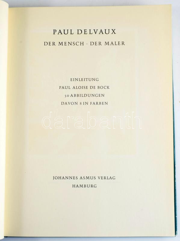 Paul Delvaux: Der Mensch, Der Maler. Einleitung Paul Aloise de Bock. Hamburg,1965., Johannes Asmus. Német nyelven. Gazdag képanyaggal illusztrált. Kiadói egészvászon-kötés, szakadt kiadói papír védőborítóban.