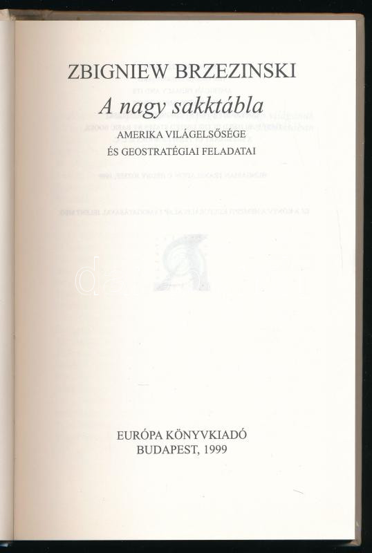 Brzesinszki, Zbigniew: A nagy sakktábla. Bp., 1999, Európa. Kiadói kartonált kötés, jó állapotban.