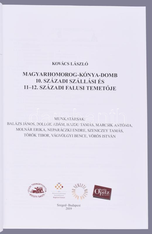 Kovács László: Magyarhomorog-Kónya-domb 10. századi szállási és 11-12. századi falusi temetője. Magyarország Honfoglalás Kori és Kora Árpád-kori Sírleletei 12. Szeged - Bp., 2022., Szegedi Tudományegyetem Régészeti Tanszéke - MTA Bölcsészettudományi Kutatóközpont Régészeti Intézete - Magyar Nemzeti Múzeum - Martin Opitz Kiadó, 776 p. Gazdag fekete-fehér képanyaggal illusztrált. CD-melléklettel. Kiadói kartonált papírkötés.