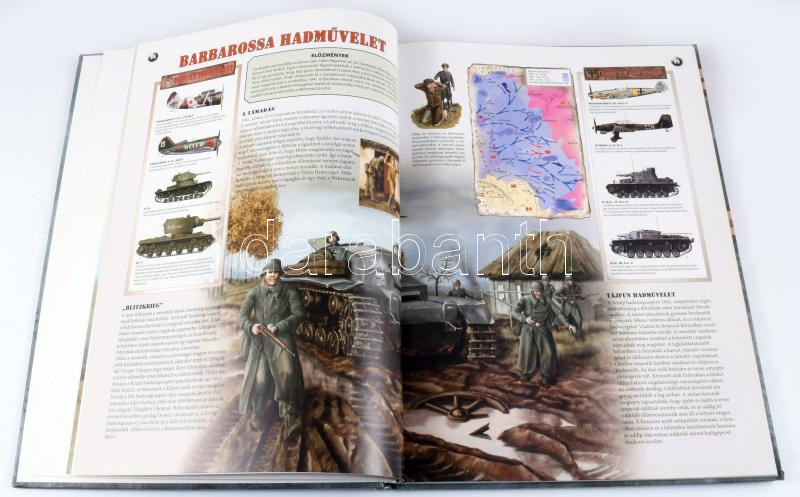 Szabó Imre: A II. világháború képes atlasza. Csaták, fegyverek, haditechnika. hn., én., Graph-Art Kft. Gazdag képanyaggal illusztrált. Kiadói kartonált papírkötés, a gerincen kis sérüléssel.