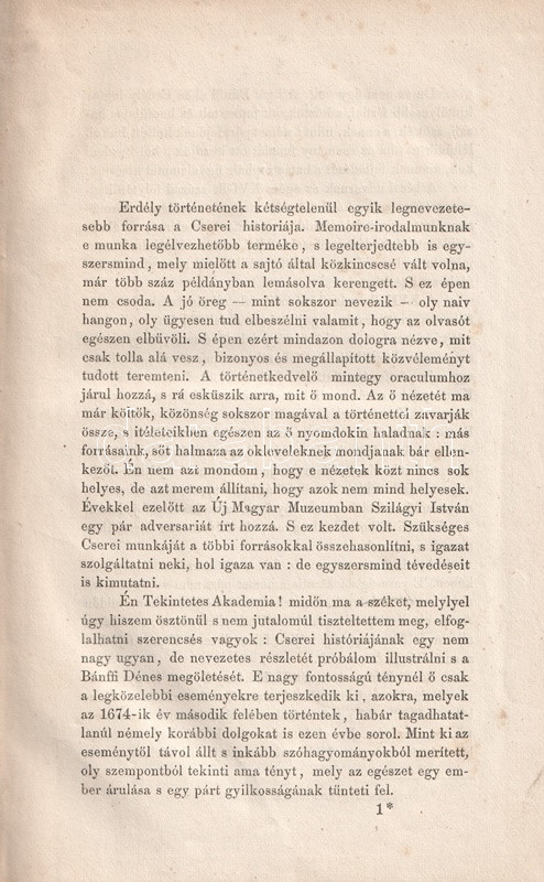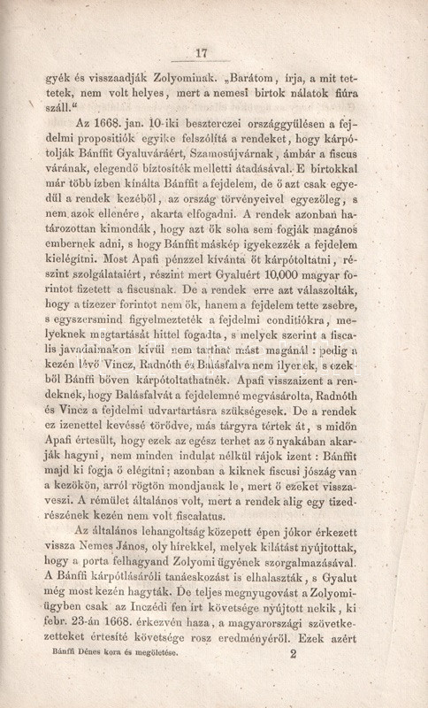 Szilágyi Sándor (1827-1899) történész, szerkesztő, szövegkiadó. Főként a kora újkori magyar és erdélyi történelemmel foglalkozott. Levéltári kutatásokon alapuló munkája a birtokait nagy gyorsasággal gyarapító Bánffy Dénes (1630-1674) erdélyi főúr elleni bűnper politikai korrajzba ágyazott története: a számos haragost gyűjtő főurat Teleki Mihály javaslatára az erdélyi országgyűlés elítélte, majd Apaffy Mihály fejedelem döntésére, a királynői közbenjárás ellenére lefejezték. Rövid történelmi monográfiánk kiadását hét évvel megelőzi Jókai Mór "Erdély aranykora" című regényének megjelenése (1852), melynek cselekményéhez ugyanez a politikai helyzet nyújt hátteret.