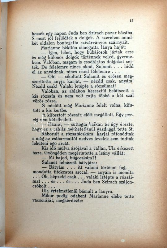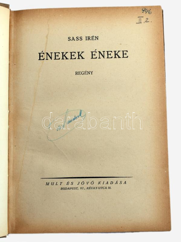 Sass Irén Énekek éneke. Regény. Bp., (1926). Mult és Jövő. 110+(2) p. Korabeli félvászon kötésben