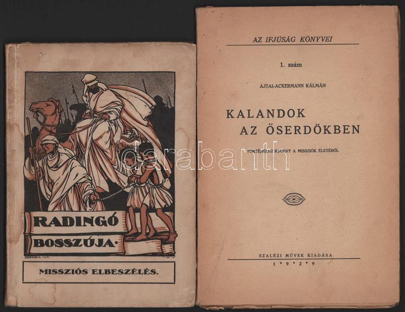 2 db - Radingó bosszúja. Missziós elbeszélés. + Ajtai-Ackermann Kálmán: Kalandok az őserdőkben. Kiadói papírkötés, kopottas állapotban.