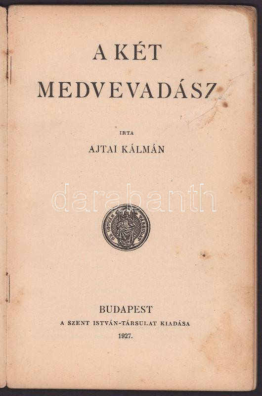 Ajtai Kálmán: A két medvevadász. Magyar Ifjúság Könyvtára 15-16. szám. Bp., 1927, Szent István-Társulat. Félvászon kötés, kopottas állapotban.