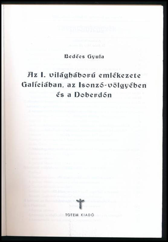 Bedécs Gyula: Az I. világháború emlékezete Galíciában, az Isonzó-völgyében és Doberdón. [Bp.], 2008, Totem Plusz. Kiadói papírkötés.