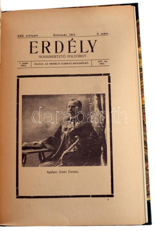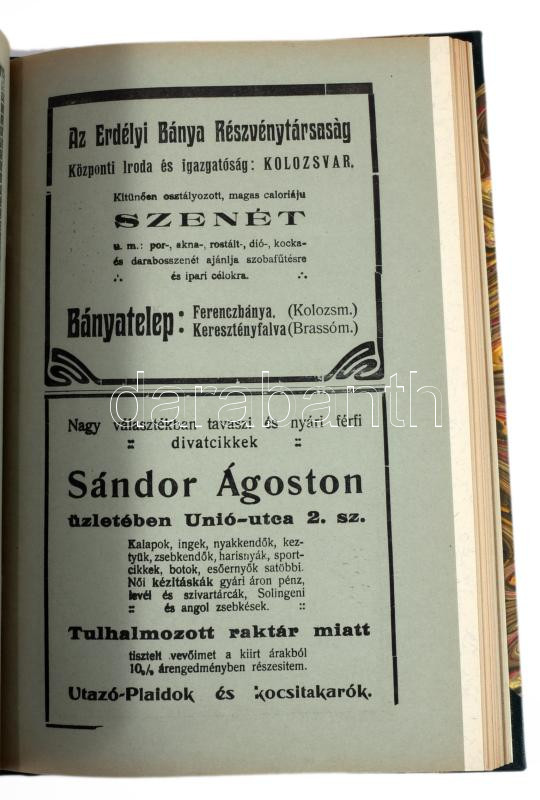 1913 Erdély. Honismertető folyóirat. Az Erdélyi Kárpát-Egyesület és Múzeumának értesítője. Főszerk.: Szádeczky Lajos. Fel. szerk.: M. Kovács Géza. 1913. XXII. évf. 1- 12 sz. Teljes évfolyam! Kolozsvár, 1913., Gámán J. Örököse-ny., 4+1-16+4;+6-17-32+4;+6+33-52+4;53-72+8;+4+73-88+6;+4+89-112+6;+4+113-128+4;+4+129-148+4;+4+149-164+4;+4+165+180+4;+4+181-196+4,+4+197-212+2+2 p. Fekete-fehér képanyaggal illusztrált. Korabeli reklámokkal. Bekötött eredeti papírborítókkal! Átkötött félvászon-kötés.