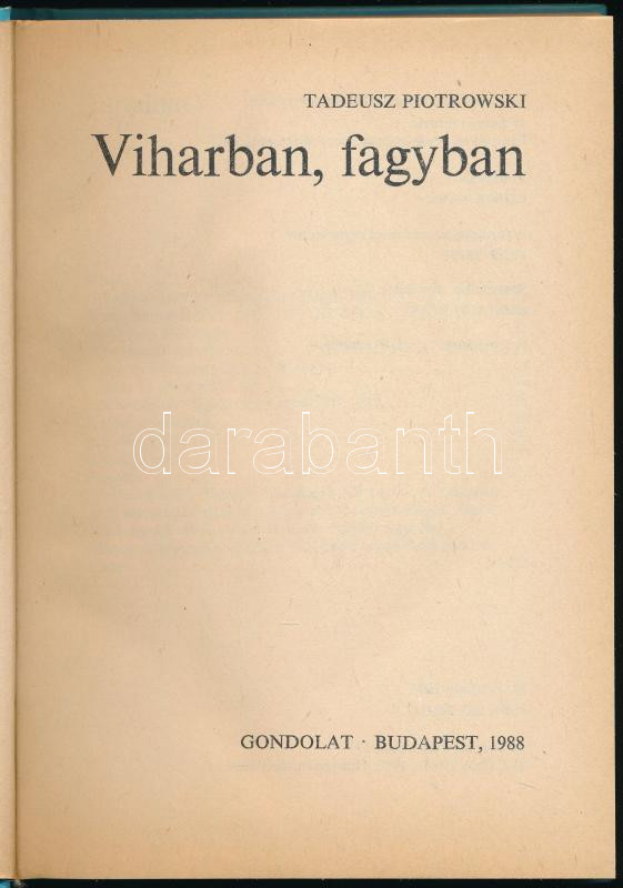 Tadeusz Piotrowski: Viharban, fagyban. Ford.: Czibók István. Világjárók 182. Bp., 1988, Gondolat. Kiadói kartonált papírkötés.