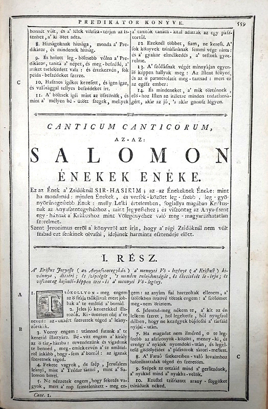 Szent Biblia, mellyet az egész kereszténységben bé-vött régi deák bötűből, magyarra forditott a' Jesus alatt vitézkedő társaság-béli nagy-szombati Káldi György pap. Leg utólsó nyomás. (1782).