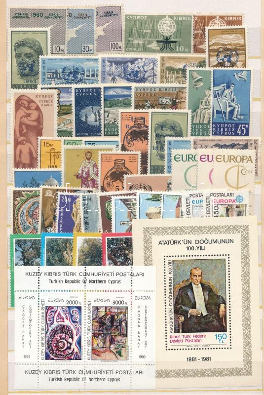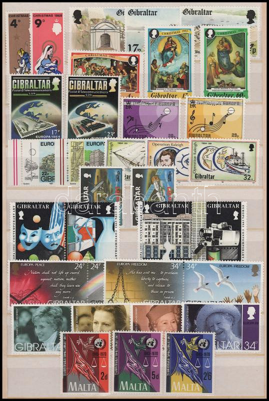 Brit gyarmatok európai utódállamainak összeállítása (Ciprus, Török Ciprus, Gibraltár, Málta), benne 81 db bélyeg sorokkal + 2 db blokk, közepes berakólap mindkét oldalán