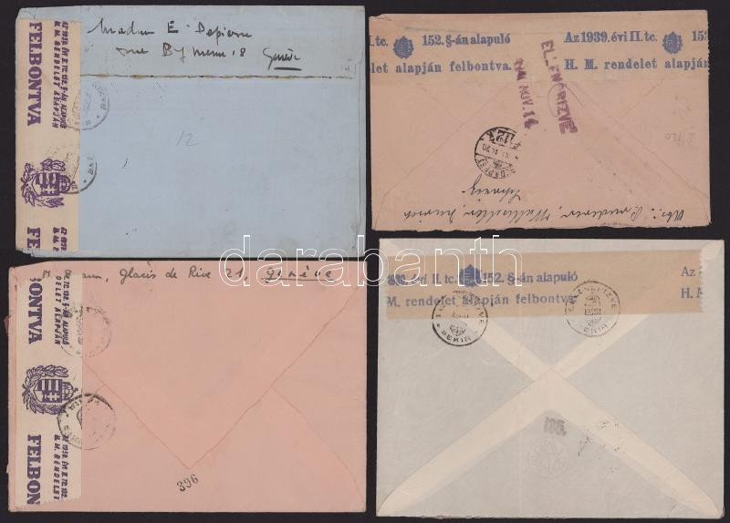 4 db levél az 1940-es évekből Magyarországba vagy Magyarországról küldve, cenzúrázva és felbontási jelzéssel