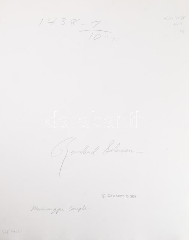 Rosalind Fox Solomon (1930 -2025): Missisipi pár. Jelzett, pecséttel, számozott. ca 1970 Zselatinos nagyítás, fotópapír. 40x38 cm / 41x52 cm