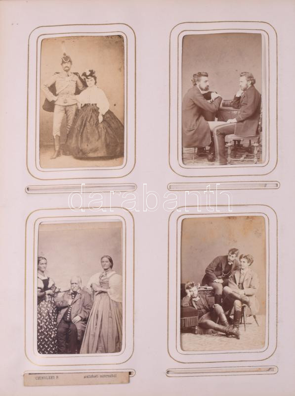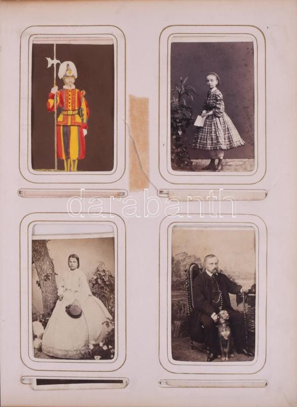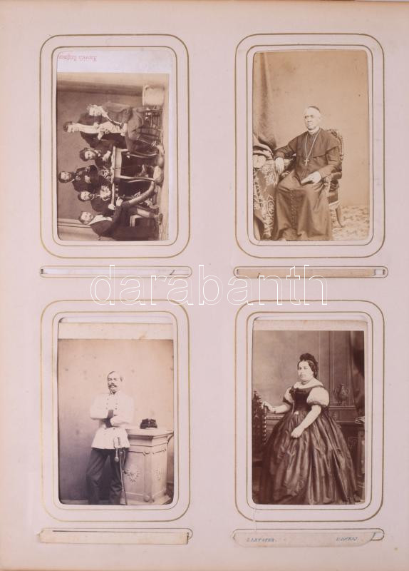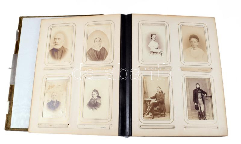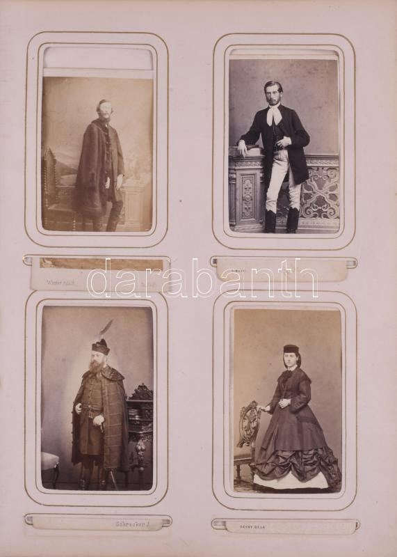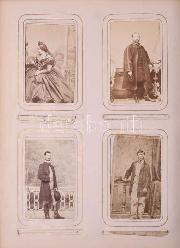 ca 1860-1870 Fotótörténeti gyűjtemény 130 db kiváló állapotú vizitkártyával és kabinetfotóval, mind magyar fényképészek műtermeiből, beazonosítani való nemes urakkal és hölgyekkel, korabeli fém veretes plüss albumban. Nagyon szép anyag!