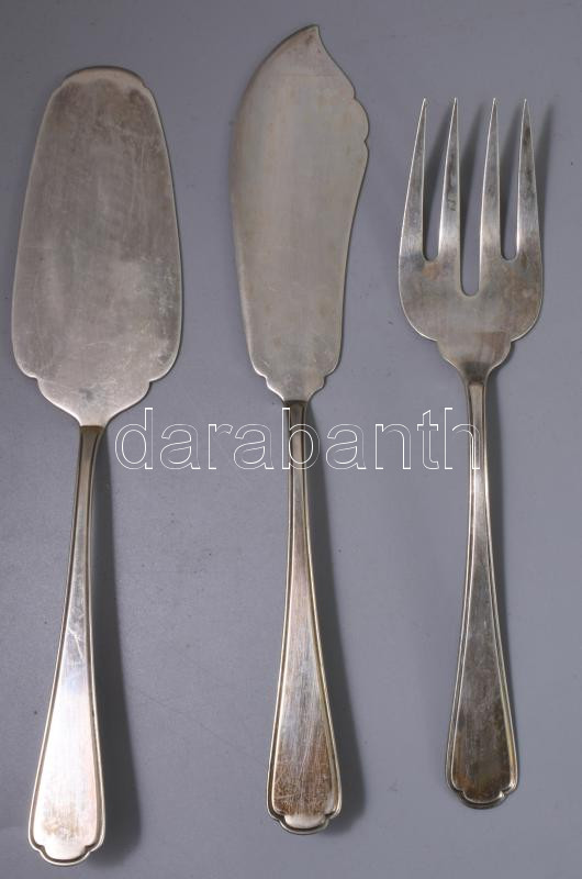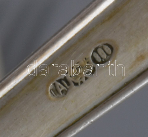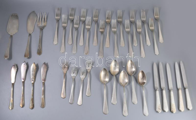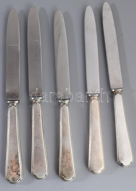Ezüst (Ag) evőeszköz készlet 800-as ezüst, jelzett összesen nettó 2485 g + 5 db ezüst nyelű kés