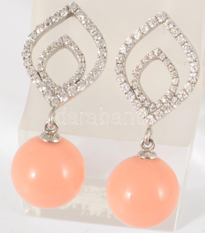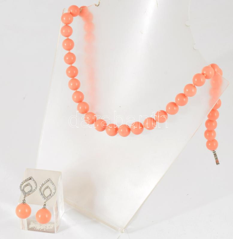 Ezüst (Ag) szerelékes ékszer szett, nyaklánc és fülbevaló pár, jelzett.