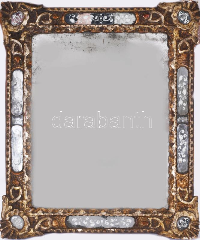 Repousse tükör. cca 1850-1880, feltehetően francia, blondel keretezésen és tükrön néhol sérüléssel, 68x56 cm