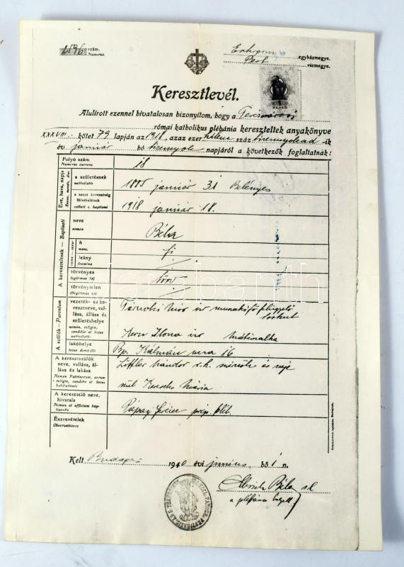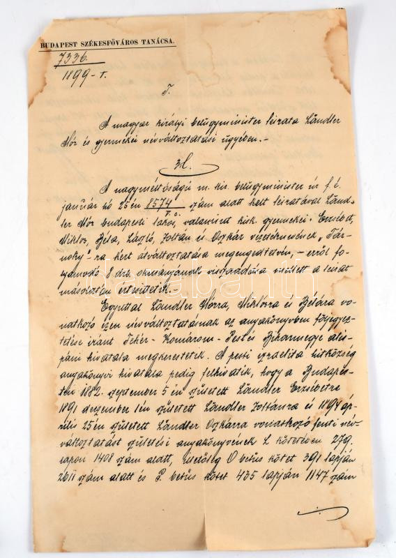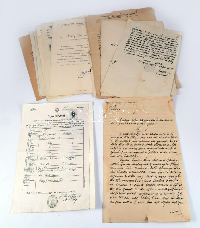 1899-1950 Ländler Mór és családja (nevüket "Tárnoky"-ra megváltoztatott, illetve később katolikus vallásra átkeresztelkedett izraelita család) iratai: névváltoztatási okirat, érettségi bizonyítvány, munkáltatói igazolások/ajánlólevelek, keresztlevél hiteles másolata, stb., összesen 15 db