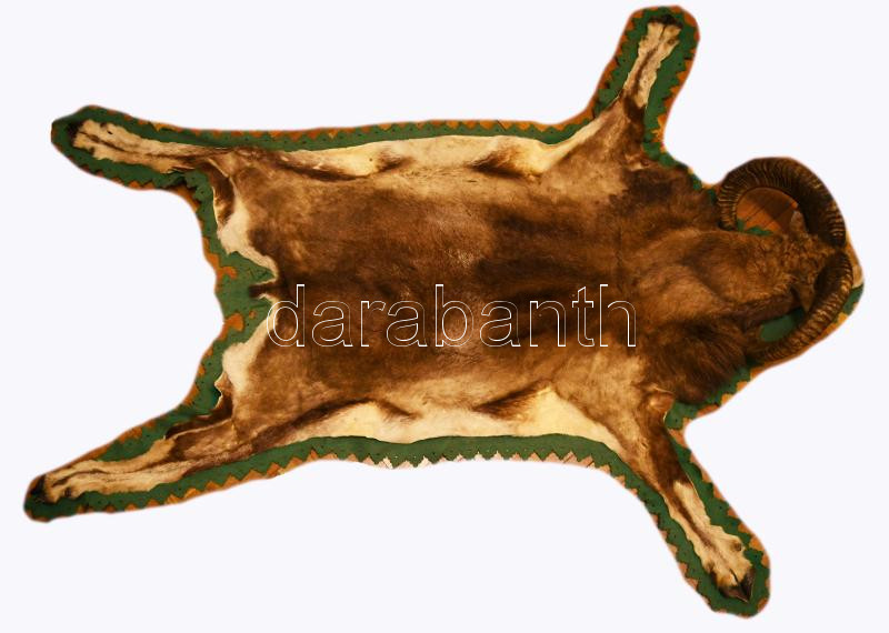 Muflon kos trófea, szakszerűen kikészítve, cca 35x40 cm + szőrme, csigája hossza 54 cm, jó állapotban