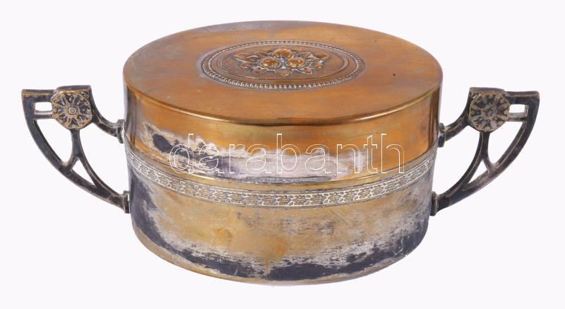 Szecessziós réz díszdoboz, zsanérjától elvált, 21x8 cm