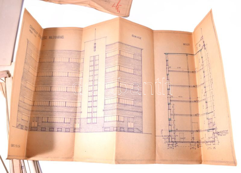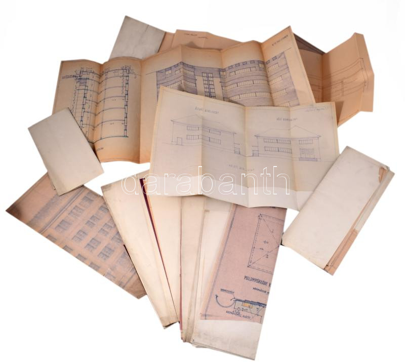 1942 A hajdúnánási Csiha-malom tervrajzai 13 db látványos tervrajz. Nagy méretben,