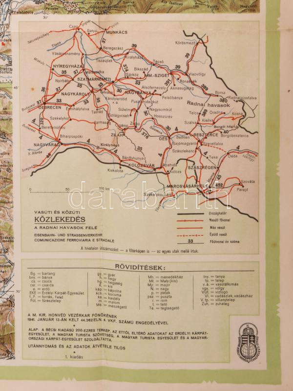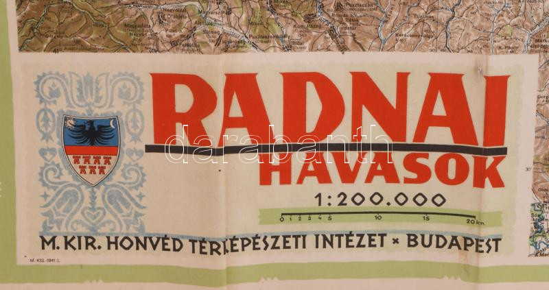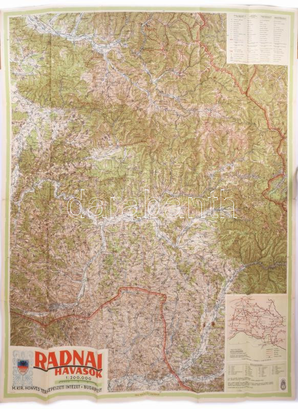 1941 Radnai-havasok térképe, 1:200 000, kiadja: M. Kir. Honvéd Térképészeti Intézet, szakadásokkal, 98×78 cm