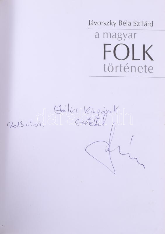 Jávorszky Béla Szilárd:A magyar folk története. A szerző, Jávorszky Béla Szilárd (1965-) zenei szakíró, szerkesztő által Jálics Kinga (1943-2019) kulturális újságíró, szerkesztő részére DEDIKÁLT példány. Bp., 2013, Kossuth - Hagyományok Háza, 286+1 p. 1. kiadás. Gazdag fekete-fehér képanyaggal illusztrálva. Kiadói papírkötés