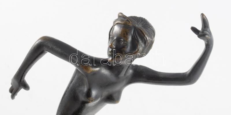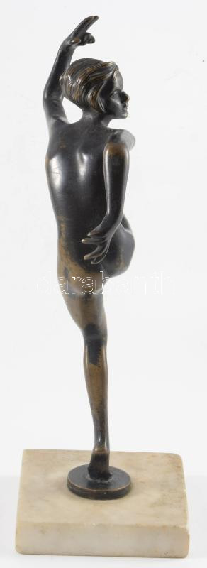 Josef Lorenzl (1892-1950): Art deco táncosnő. Patinázott bronz, márvány talapzaton, jelzés nélkül, m: 29 cm